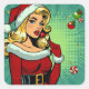 Sticker Carré Père Noël Pinup : Pop Art Glam