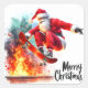 Sticker Carré Père Noël Skateboard sur un feu festif