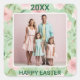 Voici notre carte de Pâques photo, un mélange charmant de charme personnalisé et d'élégance intemporelle. Capturez l'esprit de la saison avec une touche personnalisée - votre photo chérie encadrée dans un arc gracieux orné de fleurs roses pastel et de feuilles vertes. Le fond floral subtil prépare le terrain pour une célébration chaleureuse. Au-dessus de la photo, l'année marque le moment, tandis qu'en dessous, "Joyeuses Pâques" ajoute une touche de joie. Ouvrez la carte pour révéler un sentiment magnifiquement conçu, apportant de la chaleur à vos vœux sincères. Rendez ces Pâques vraiment spéciales avec un autocollant qui combine des souvenirs personnalisés et un design intemporel. Modifiez le texte de la page produit ou pour changer le style ou la couleur de la police, utilisez l'outil de conception.