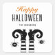 Sticker Carré Personnalisé Happy Halloween Witch Feet Blanc