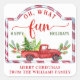 Belle aquarelle festive festive avec cadre de style sucre de canne encadrant l'image avec camion rouge vintage transportant des arbres de Noël à l'arrière, détails avec verdure et saint et la phrase "Oh What Fun, happy Holidays" dans un mélange de calligraphie manuscrite et typographie de bloc. Zone de texte personnalisée en bas pour votre propre message et nom. Collection avec les produits de coordination disponibles.