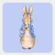 Pierre le lapin avec des papillons bleus et un arrière - plan bleu pastel.
