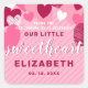 Petit Coeur Doux rose Anniversaire Merci Personnalisé Carré Sticker. Nom personnalisé Saint Valentin fête de premier anniversaire, avec arrière - plan rose pastel et les coeurs rose, blanc, magenta et bordeaux. facile à personnaliser modèle, pour un an bébé fille de 1er anniversaire.