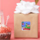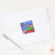 Sticker Carré Petit Elfe de Noël debout sur les cadeaux