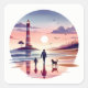 Ce décor côtier paisible capture un moment de coucher de soleil serein où un parent, un enfant et un chien se promènent le long du sable réfléchi et humide, encadré par un phare au loin. La composition circulaire et les tons pastel doux évoquent calme et nostalgie, tandis que les oiseaux glissent à travers un ciel onirique de lavande et de corail. La symétrie des reflets renforce l'atmosphère paisible, en faisant une métaphore visuelle parfaite pour des souvenirs chéris et une connexion tranquille. Idéal pour évoquer des sentiments de chaleur, de famille et d'évasion côtière, cette scène mêle illustration numérique peinte à une esthétique minimaliste et moderne. Présentez-le comme un rappel quotidien des joies simples de la vie et des rythmes doux de la nature. L'IA a généré des oeuvres d'art.