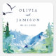 Ces enveloppes de mariage de destination Rocky Mountain sont parfaites pour un mariage extérieur. Le design comprend un paysage sauvage peint en bleu et vert avec des pins d'aquarelle, des oiseaux et des montagnes. Personnalisez le étiquette avec les noms de la mariée et du marié.