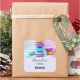 stickers de produits de cuisine avec une photo délicieuse avec une pile de macarons colorés.