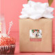 Autocollant moderne avec votre photo préférée de votre bébé à fourrure, "Joyeux Pawlidays", nom de famille, adresse en lettrage serif moderne sur fond rouge festif.