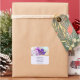 Bougie, savon ou autocollants de produits de cuisine avec une belle photo d'un crocus violet foncé à l'intérieur d'un pot en verre. Une légère fleur violette est présente dans l'arrière - plan.