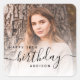 Autocollants modernes de fête d'anniversaire avec une photo personnalisée. Remplacez facilement l'exemple d'image par une photo de l'invité d'honneur. Le mot "anniversaire" apparaît dans un élégant script d'écriture manuscrite noire. Personnalisez le texte avec le nom et l'année d'anniversaire en noir sans serif police. Une superposition de dégradé blanc aide à faire apparaître le texte.