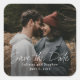 Cette photo moderne, élégante et élégante enregistrer l'autocollant de date dispose d'un script enregistrer la date overlay et détails personnalisables et la photo sur le devant. Cela fait un grand ajout aux enveloppes de papeterie mariage ou aux faveurs d'une fête de fiançailles.
