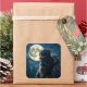 Bigfoot autocollants. Un Sasquatch aux yeux dorés avec une chouette sur son épaule avec un arrière - plan de forêt Pleine lune dans les tons bleus.