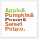 Pomme & Citrouille & Pecan & Potato Sucrée. Globe Trotters se spécialise dans l'imagerie idiosyncratique du monde entier. Vous y trouverez des Cartes de Voeux, Cartes Postales, Affiches, Caisses Téléphoniques, Stickers, Mousepads et plus encore.