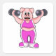 Sticker Carré Pig de Bodybuilding avec des cloches