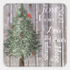 Sticker Carré Pin Tree Avec Cardinal Rustique Noël
