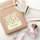 stickers Merci avec un motif mignon avec des cônes de pin et saint sur un arrière - plan d'aquarelle jaune avec des petits cercles blancs éparpillés autour.
