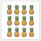 A clean sticker illustration of a whole pineapple with textured golden skin and a green leafy crown