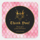 Cet autocollant de remerciement élégant et chic de fête d'anniversaire présente un faux dragon de parties scintillant d'or sur un arrière - plan à l'échelle d'un dragon rose. Le texte combine les polices décoratives et les polices en détresse pour un look historique et médiéval. Les accents de parties scintillant et les éléments d'imaginaire créent un mélange parfait entre un anglais moderne et un anglais ancien.
