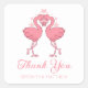 Show your gratitude with a playful touch of flamingo flair! This cheerful sticker features an adorable flamingo couple sharing a kiss under whimsical, floating hearts. With vibrant pink feathers and soft pink text set against a crisp white background, it’s perfect for sealing favor bags, decorating envelopes, or adding a fun element to your thank-you gifts. Whether you’re hosting a beach wedding, tropical ceremony, or Hawaiian luau, this sticker brings joy, romance, and personality to every detail. It's a sweet way to thank your guests for their love, laughter, and unforgettable moments.