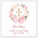 Sticker Carré Pink floral wreath bow First Communion