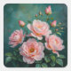 Sticker Carré Pink Peonies Artwork on Emerald Green
