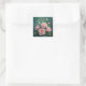 Sticker Carré Pink Peonies Artwork on Emerald Green