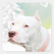 Terrier taureau blanc type pitbull avec un arrière - plan enneigé, Noël ou juste hiver, autocollant de vacances amoureux de les chiens