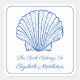 Cet autocollant de plaque d'estampille d'inspiration côtière présente un coquillage de coquillage bleu et blanc classique sur un arrière - plan de blanc solide. Personnalisez avec votre choix de texte spécial.