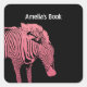 Sticker Carré Plaque-livre Zèbre rose et noir personnalisée