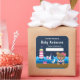 Cette petite plaque de baby shower mignonne et amusante comporte un ours marin sur une terrasse en bois avec un mouette et un crabe. Dans l'arrière - plan il y a un phare rose et blanc, un oiseau mignon sur un voilier, des vagues de l'océan et un ciel étoilé bleu marine. Le texte combine des polices audacieuses et serif pour un look élégant et moderne. Parfait pour un baby shower à thème nautique.