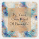 Sticker Carré Plumes Peacock Or Aqua Blanc