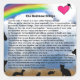 Le poème commémoratif Rainbow Bridge est une grande source de souvenirs et de réconfort pour les amoureux des animaux de compagnie depuis des années. Perdre un animal n'est jamais facile........ c'est comme perdre votre meilleur ami et un membre de votre famille. Beaucoup CROIENT que lorsque leurs animaux de compagnie bien-aimés meurent, ils traversent le Rainbow Bridge. L'artiste Angel, Angelina LaFera, a illustré cet hommage sincère à la mémoire de nos animaux de compagnie disparus. Elle croit que le corps meurt et que l'âme vit et que la connexion perdure et maintient le lien vivant........... L'AMOUR est éternel.......... au-delà du pont Rainbow.