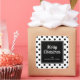 Sticker de Carré de Noël Joyeux Pois blancs noirs personnalisés.