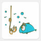 Sticker Carré Poisson drôle et ver à l'hameçon Humour de pêche