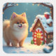 Sticker Carré Pomeranian in Gingerbread Village Christmas