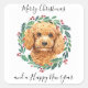Sticker Carré Poodle Elegant Chien Wreath Joyeux Noël
