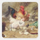 Sticker Carré Poules nichant avec leurs poulets