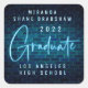 Panneau néon "gradué" en bleu cyan sur arrière - plan texturé en brique