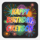 Sticker Carré Prénom "GREYSON", Amusant "HEUREUX ANNIVERSAIRE"