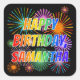 Sticker Carré Prénom "SAMANTHA", Amusant "HEUREUX ANNIVERSAIRE"