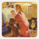 Sticker Carré Prières au coucher, Fille avec chiot, Religion Vin