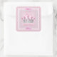 Sticker Carré Princesse Baby shower fille rose Gem argent Tiara