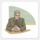Un professeur assis à son bureau dans une classe. Cette conception semble vraiment efficace sur ces Stickers