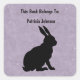 Ce étiquette carré autocollant est un joli violet avec le profil latéral d'un lapin lapin assis en silhouette noire. Customisez votre texte avec les modèles.