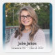 Autocollants de remise des diplômes Une photo Promotion 2020. Le nom et le texte de l'école sont personnalisables. Utilisez simplement le modèle pour modifier facilement le texte. Fond rayé avec du bleu marine et du bleu.