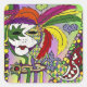 Sticker Carré Psychédélique Mardi Gras Plumes Masques Cadeaux Vê