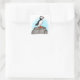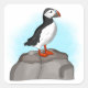 Art numérique tiré à la main Puffin debout sur un rocher avec arrière - plan bleu.