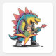 Sticker Carré Punk Rock Stegosaurus Dinosaur Jouer Guitare