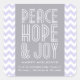 Envoyez un accueil contemporain en cette période de fêtes. Cet autocollant présente les mots "Paix, Espoir et Joie", rendus dans une police moderne sur un panneau de couleur mauve contre un arrière - plan à motif de chevron violet. Grand comme une étiquette cadeau ou une faveur. Disponible en couleurs alternatives avec des produits correspondants.