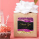 Cet autocollant élégant et glamour sweet sixteen vous remercie, présente des larmes violettes et or faux parties scintillant sur un arrière - plan noir. Le texte combine écriture manuscrite et polices sans serif modernes pour un look élégant et sophistiqué.